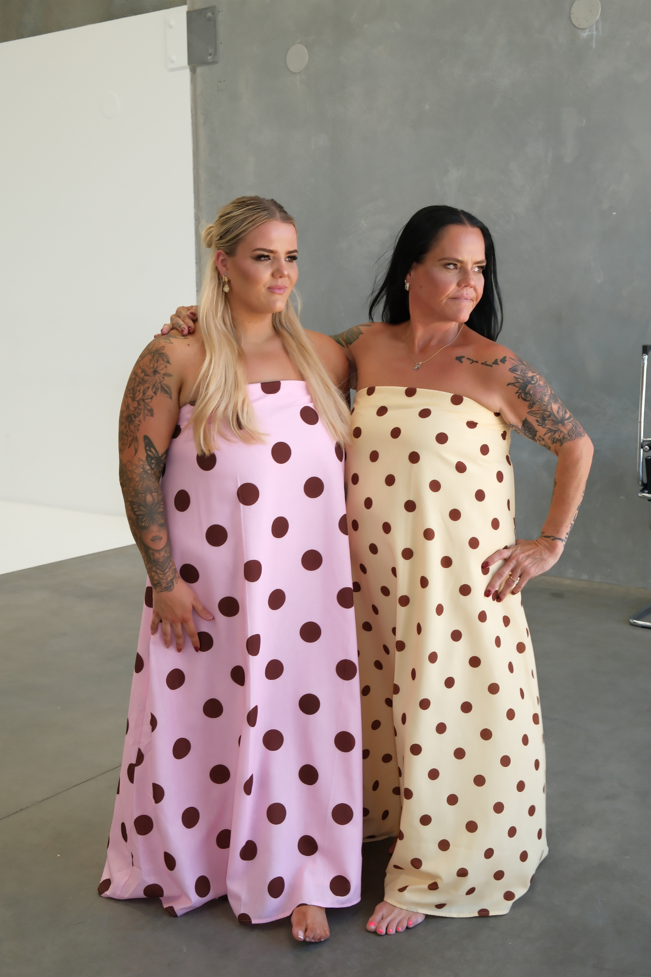 POLKA LINEN SET - CHOCOLATE ON PINK
