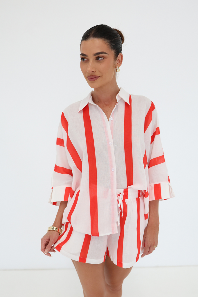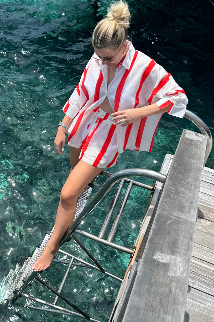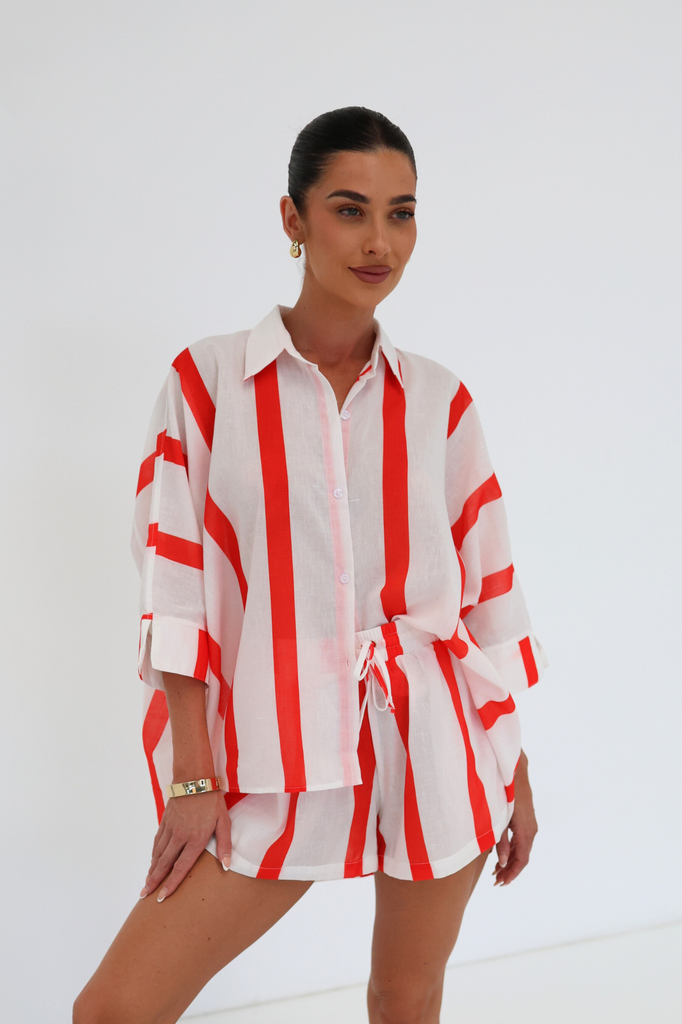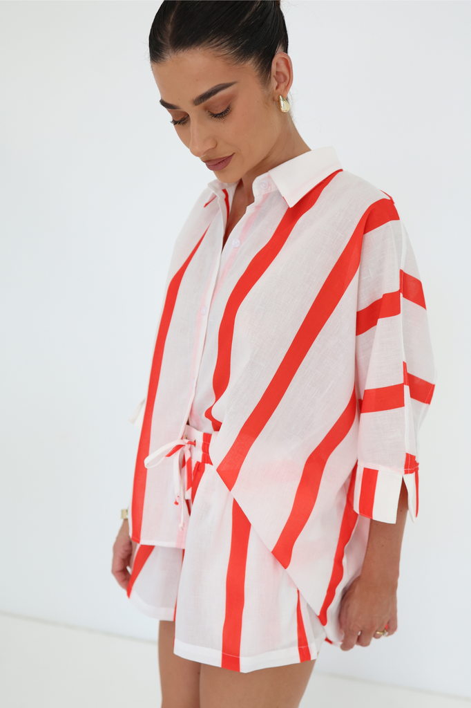 Our classic print was created in house by our founder. This lounge shirt and shorts set is designed for ultimate comfort and is made from our signature 55:45% Linen/cotton blend (our customers love it because it rarely needs to be ironed!)