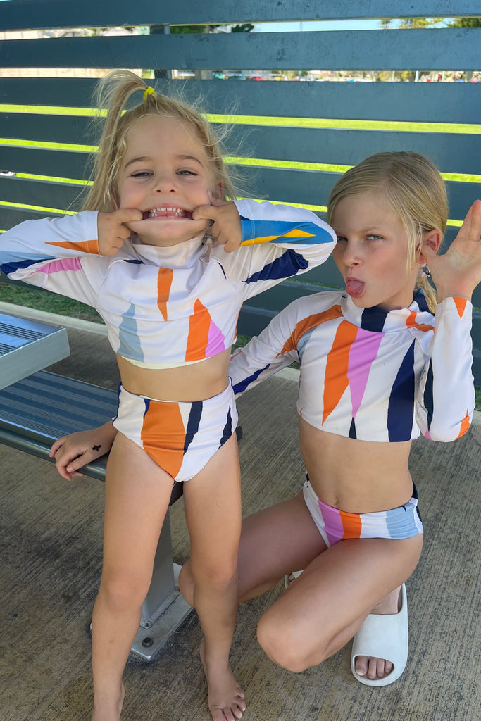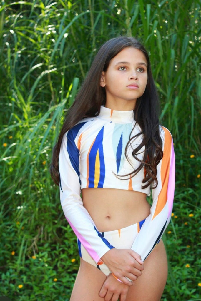 Bikini deux pièces - manches longues, haut court à col haut et culotte taille haute
