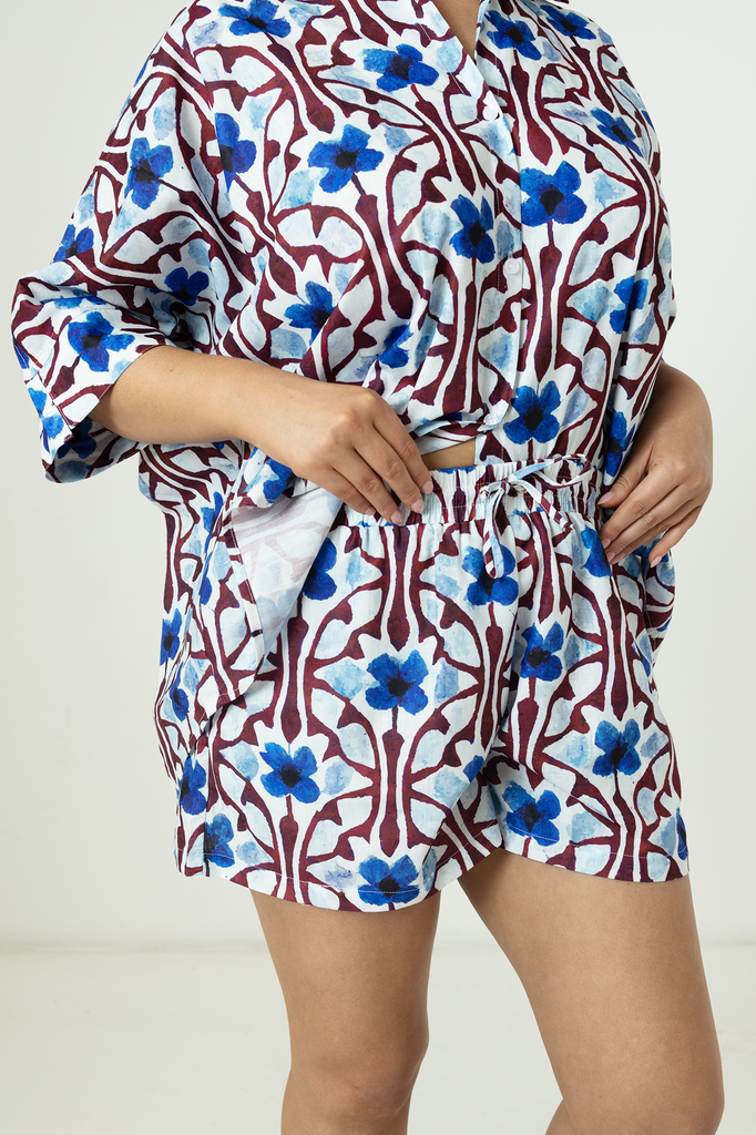 The Shirt has a relaxed fit and the shorts have an adjustable waistband.